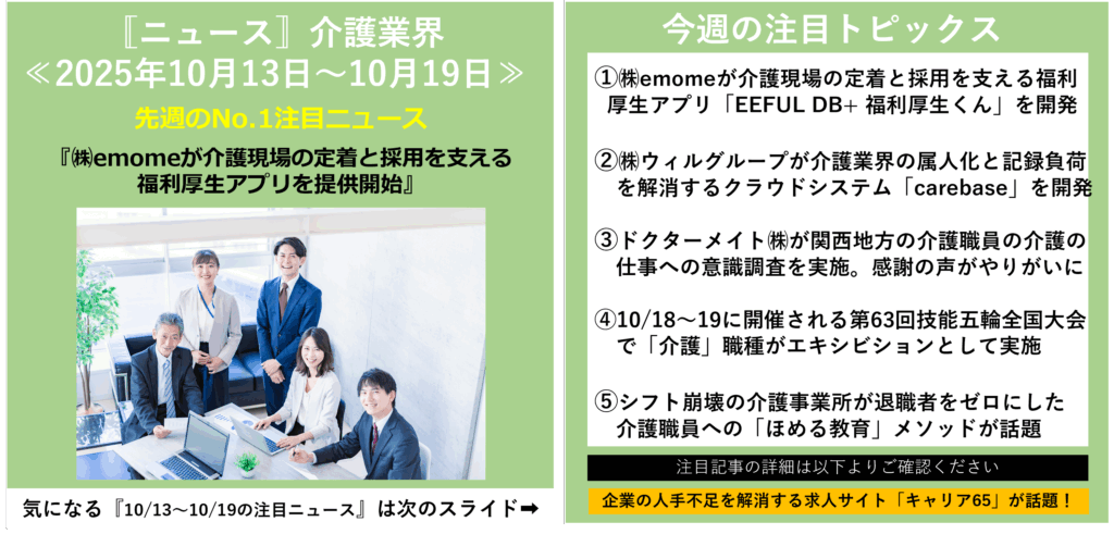 株式会社emomeは2025年10月16日、介護現場向けの福利厚生アプリ「EEFUL DB+ 福利厚生くん」をリリースしました。