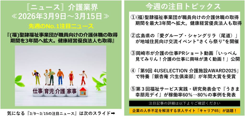 ① 介護休職を拡大~最大3年間取得可能に~ 健康経営優良法人2026(ホワイト500)も取得(社会福祉法人 聖隷福祉事業団)