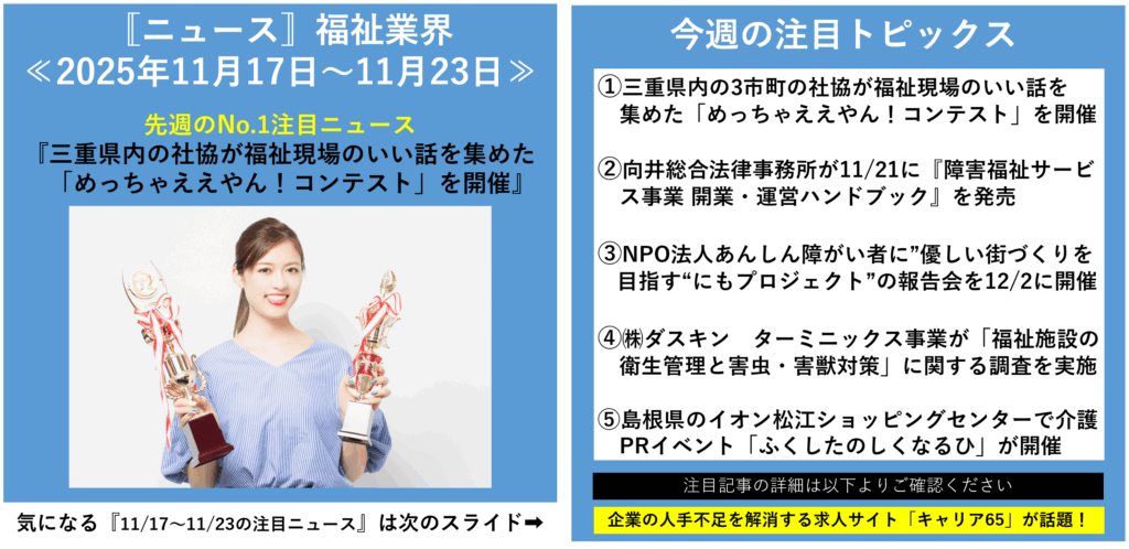 そこで本記事では、今週注目された 福祉業界×採用・人事トレンドのニュース5本 を厳選し、人事担当者の視点で