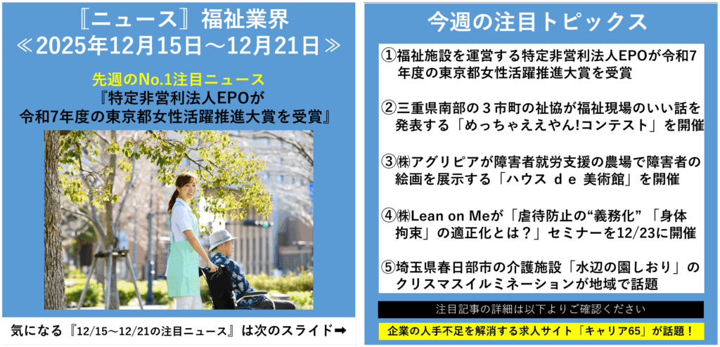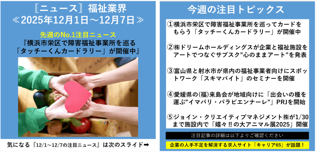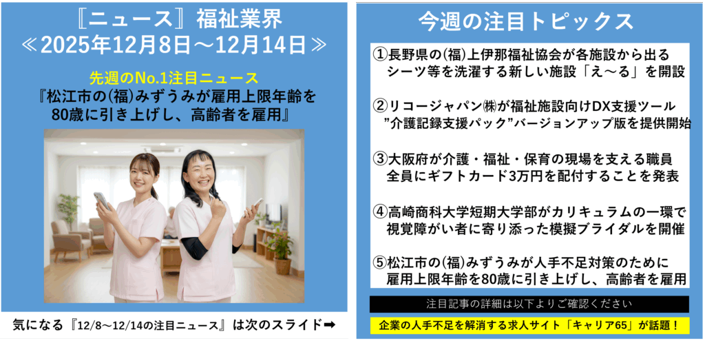 本記事では、今週の福祉業界で注目された人事・採用関連ニュース5本を取り上げ、